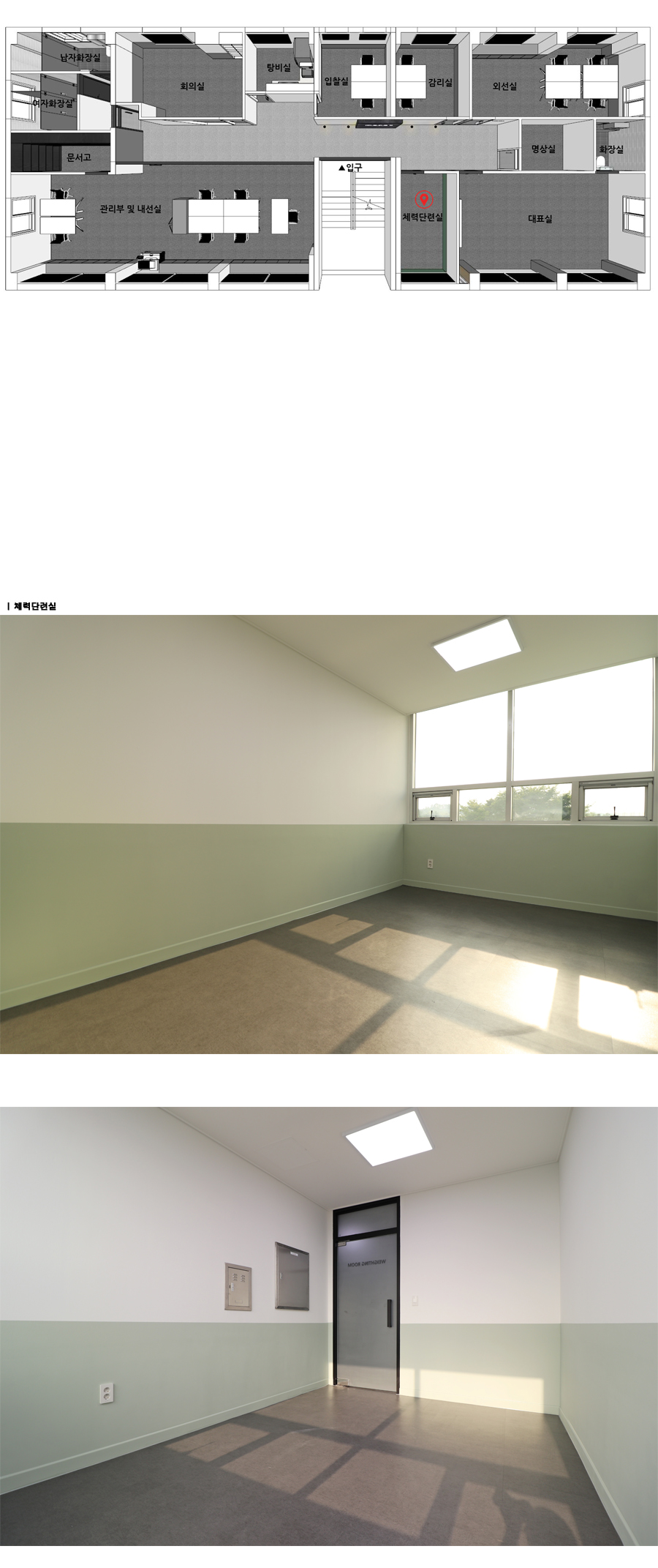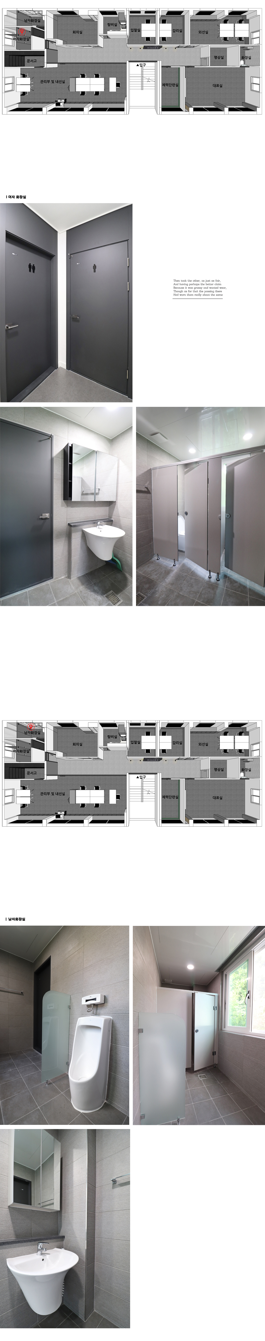 - ¹Ù´ÚÀº Áø±×·¹ÀÌ·Î ¾ÈÁ¤°¨À» ÁÖ¾ú°í, º®¸éÀº À¯±¤±×·¹ÀÌŸÀÏÀ» ½Ã°øÇÏ¿© °ü¸®°¡ ¿ëÀÌÇϵµ·Ï ÇÏ¿´´Ù.