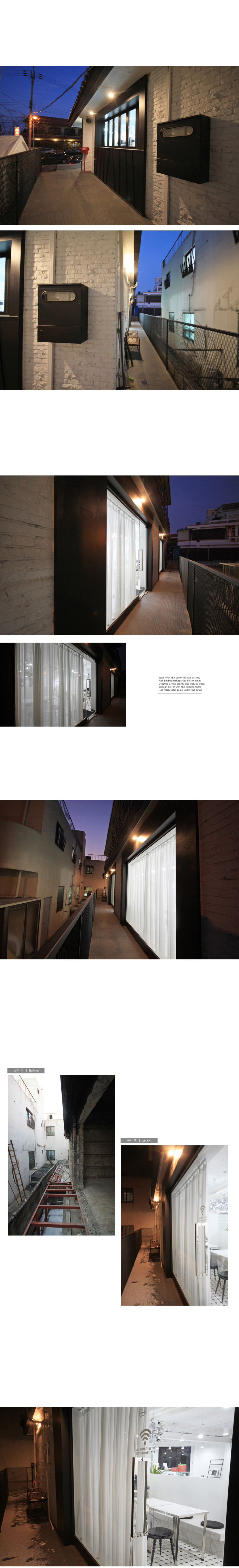 - ÀÔ±¸¿¡¼ Á¤¸éÀ¸·Î º¸ÀÌ´Â °è´ÜÀº Æ÷ÀÎÆ® µðÀÚÀÎÀÌ µÉ ¼ö ÀÖµµ·Ï ºí·¢ÀÇ ±¸·Î ¸¶°¨Àç·Î ÀÛ¾÷Çϰí, »ç¼± ÄÆÆÃÀ» ÇÏ¿© ºûÀÌ »õ¾î³ª¿À´Â ÀÎÅ׸®¾î¸¦ ¿¬ÃâÇÏ¿´´Ù.
