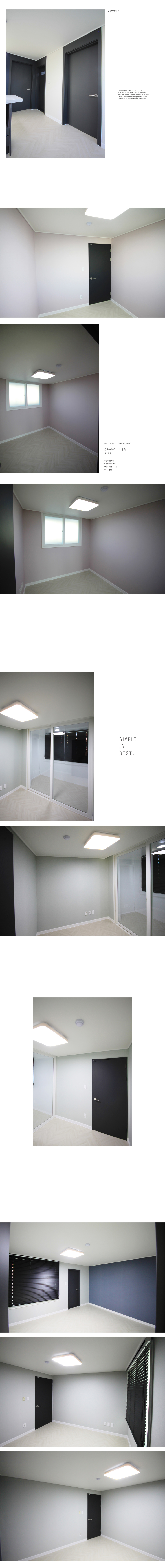 - °¢ ¹æÀÇ µµ¾î´Â ¸Ôȸ»öÀ¸·Î ½Ã°øÇÏ¿© Â÷ºÐÇÏ°í ¼¼·ÃµÈ ´À³¦À¸·Î ¿¬ÃâÇÏ¿´´Ù.
